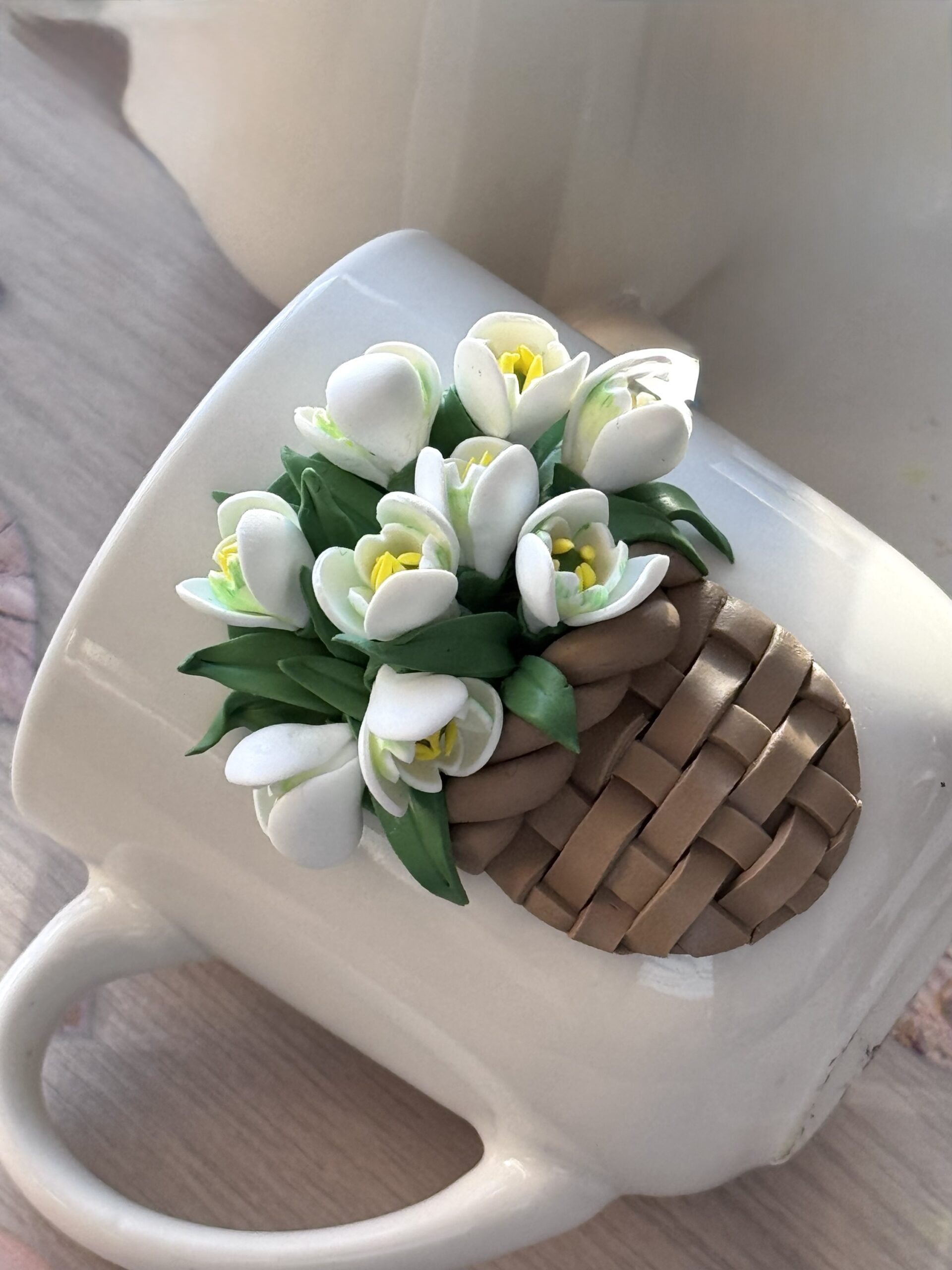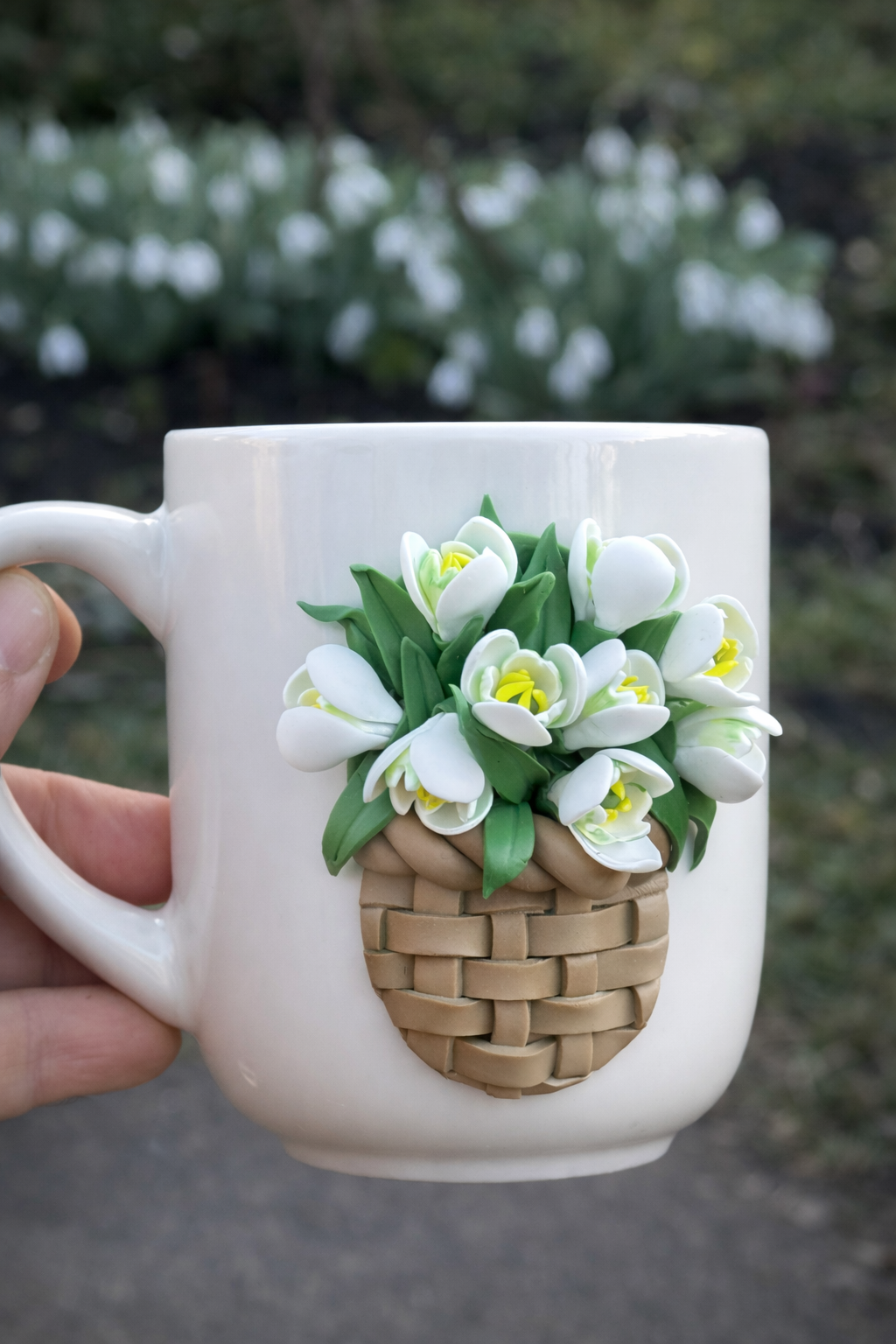 Ghioceii, simbol al purității, începuturilor noi și gingășiei, sunt redați în relief, manual, fiecare petală fiind lucrată individual, transformând cana într-o piesă unicat, cu personalitate și poveste.