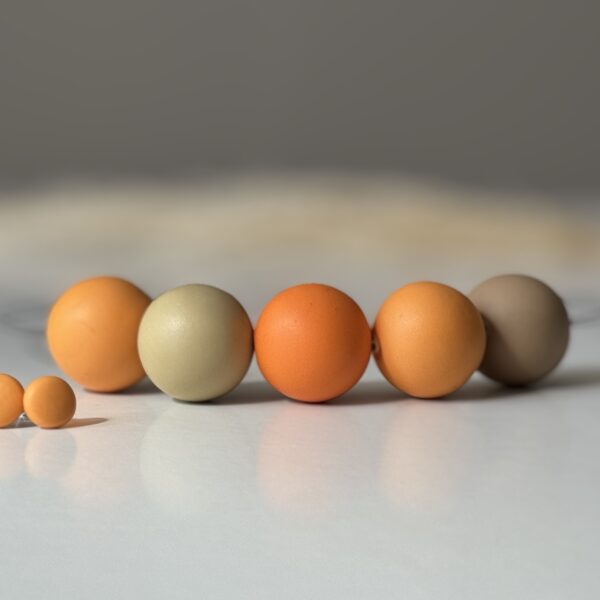 Fiecare bilă care formează acest colier este modelată ,culorile fiind combinate manual astfel încât rezultatul final să aibă o cromatică plăcută și relaxantă pentru ochi